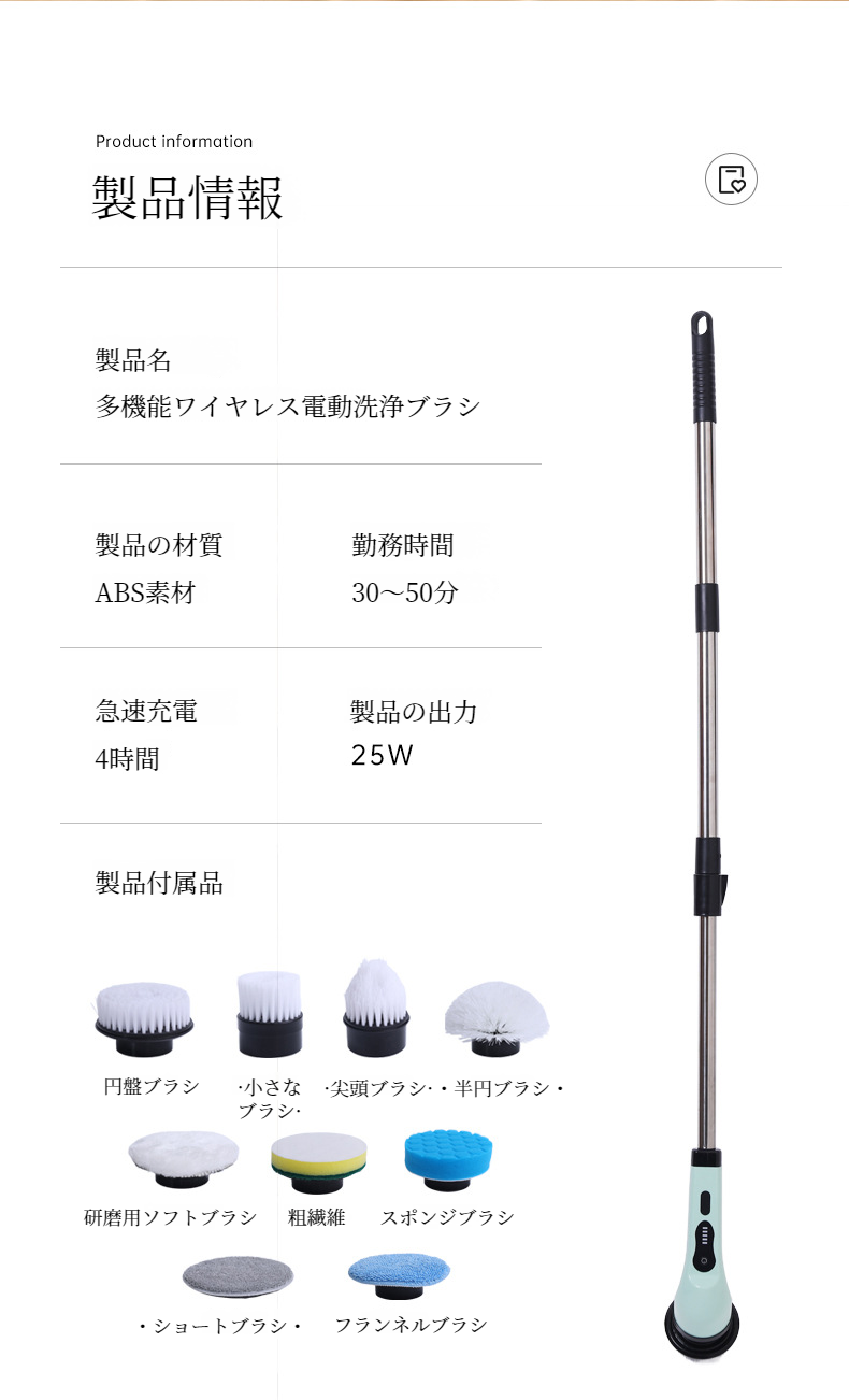 電動回転式スクラバー充電式ポータブル電動多機能クリーニングブラシ長短両用ブラシ強力なクリーニングアーティファクトキッチンバスルームガラスに適しています
