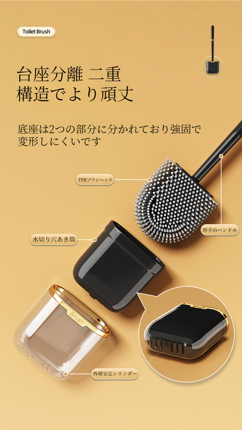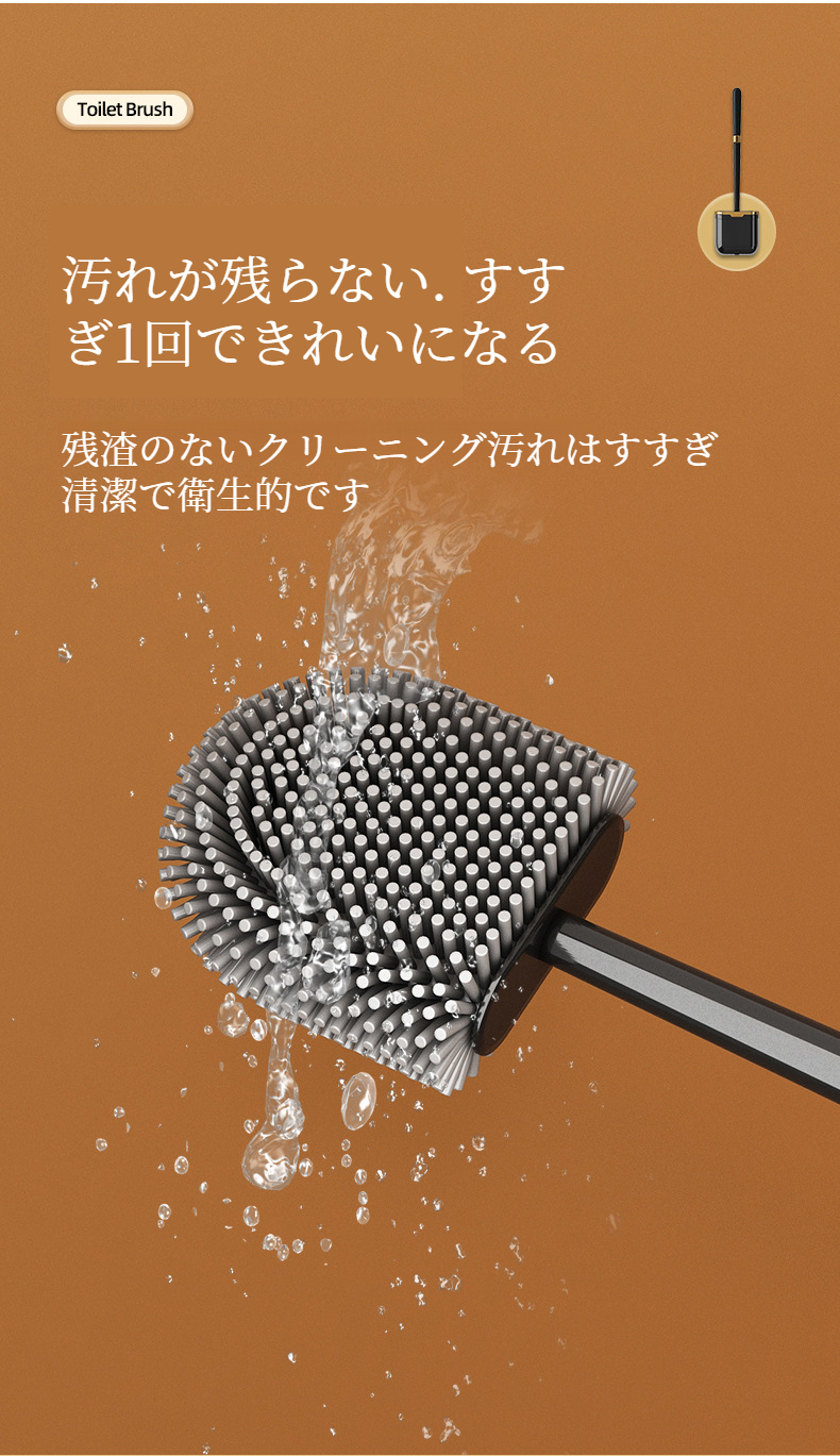 壁掛け対応シリコン製トイレブラシの使用イメージ